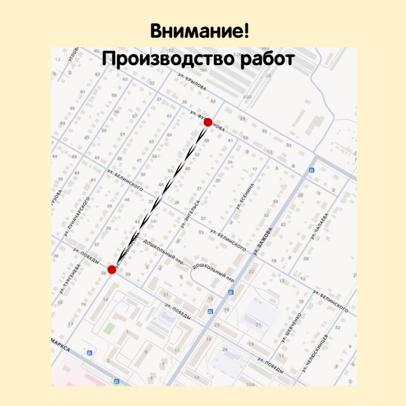 С 14 октября по 5 декабря этого года будут вестись работы по ремонту сети водоснабжения по муниципальному контракту ул. Ломоносова на участке от ул. Фурманова до ул. Победы, ул. Фурманова участок домов 12-20.