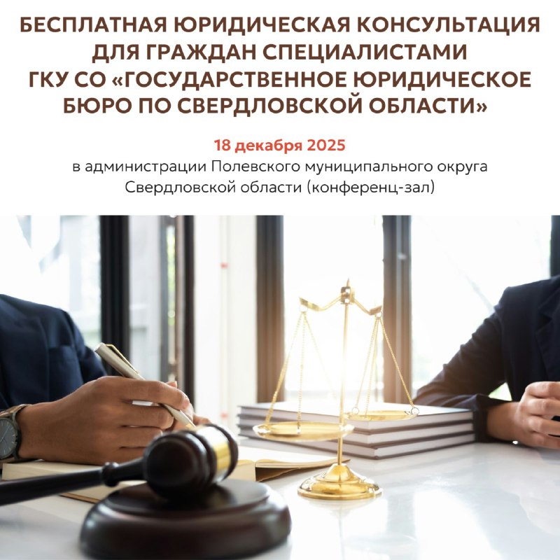 18 декабря Государственное юридическое бюро Свердловской области проведет для жителей Полевского округа бесплатные юридические консультации.
