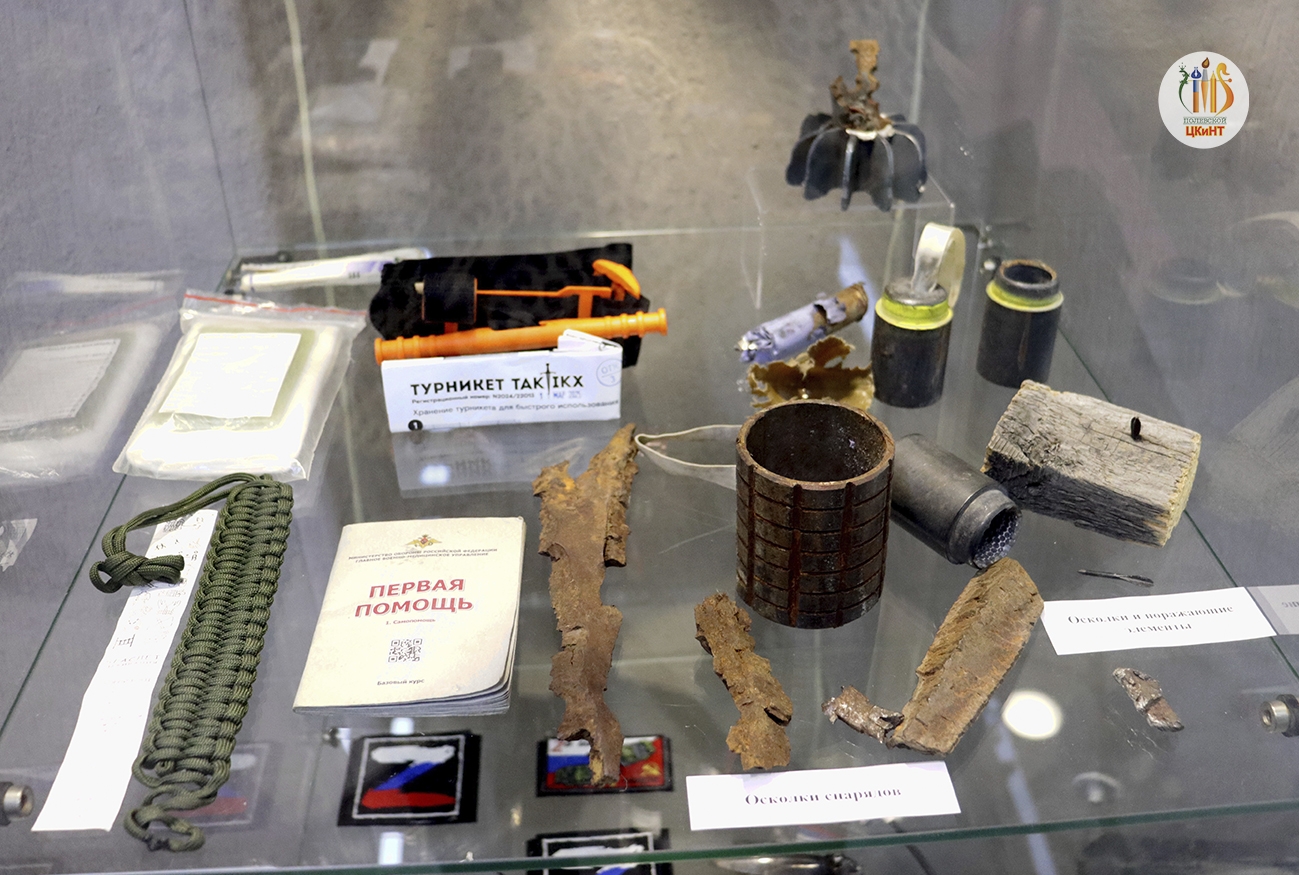 На выставке можно увидеть около двухсот экспонатов. Среди них — личные вещи жителей Полевского, документы, фотографии, фрагменты снарядов, элементы военной экипировки, маскировочные сети, макеты техники и оружия и многое другое. Все эти предметы собрали благодаря усилиям участников специальной военной операции, их семей, Администрации Полевского, Управления культуры, Центра культуры и народного творчества, а также общественных организаций «Граница» и «Своих не бросаем».