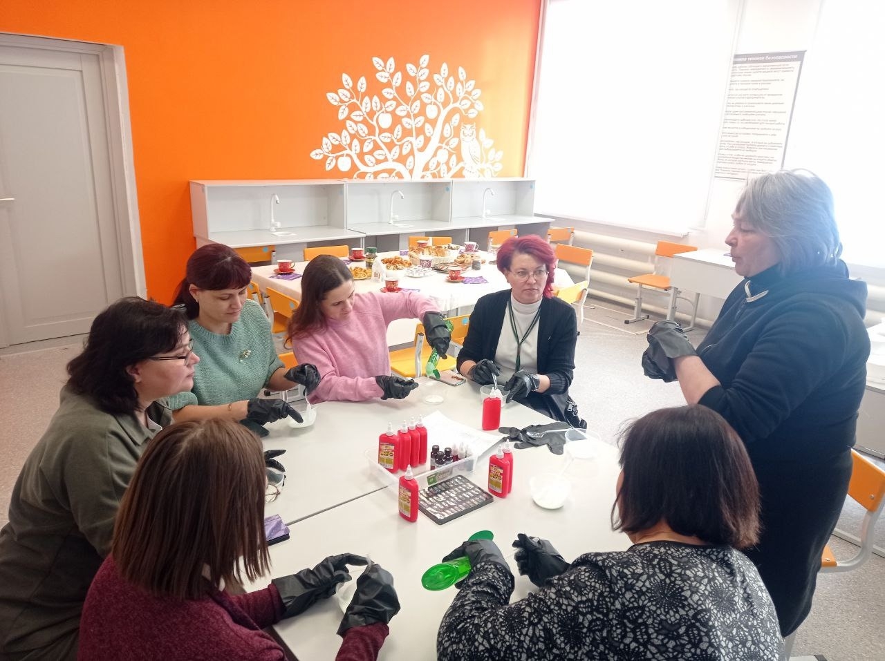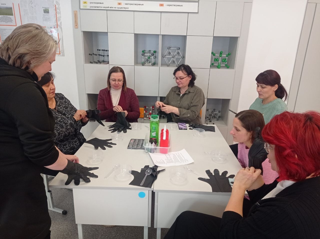 Практическая часть заседания прошла ярко и интересно: Марина Шитикова, учитель химии и биологии, продемонстрировала два эксперимента — изготовление слайма и бомбочек для ванны. Эти опыты вызвали живой интерес и были рекомендованы для внедрения во внеурочную и проектную деятельность.