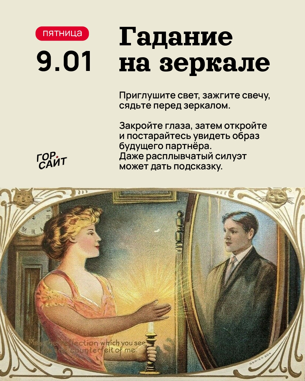 Этот мистический ритуал полон романтики и тайн. Позвольте зеркалу показать встречу с суженым!😏
