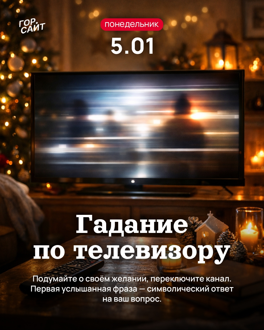 Подумайте о желании, переключите канал и прислушайтесь к первой фразе — это символический ответ судьбы✨