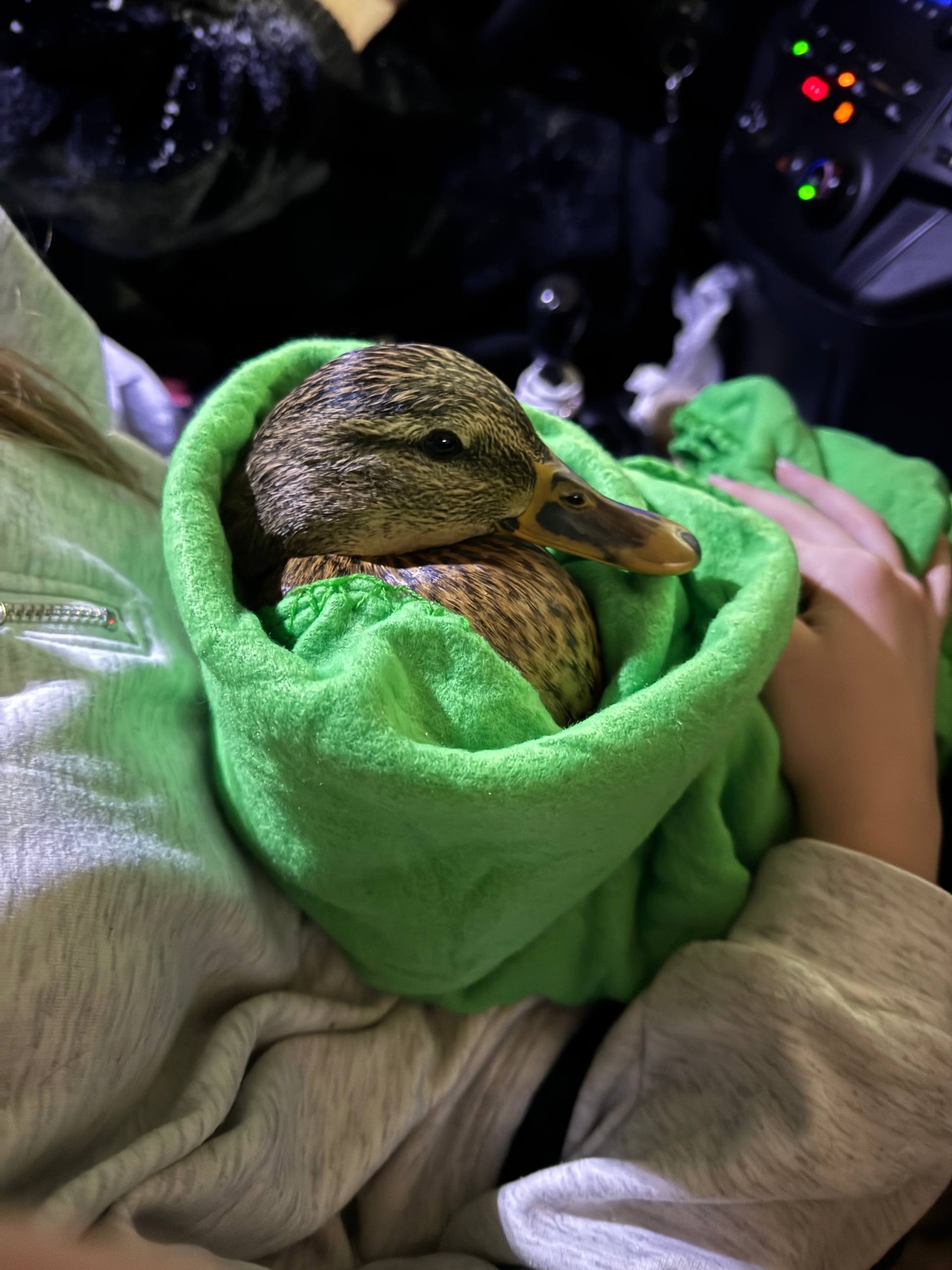 Крючок удалили на месте. Утку отвезли в приют «Особый питомец» в Полевском, где ей оказали помощь.