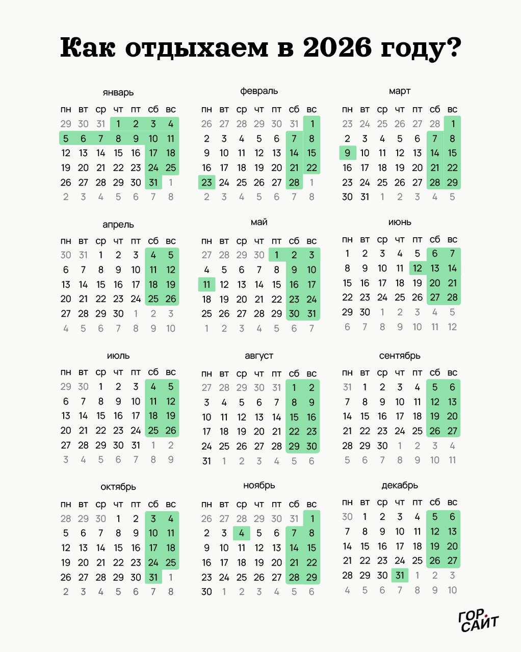 В 2026 году россиян ожидают сразу семь сокращённых рабочих недель и ни одной шестидневки.