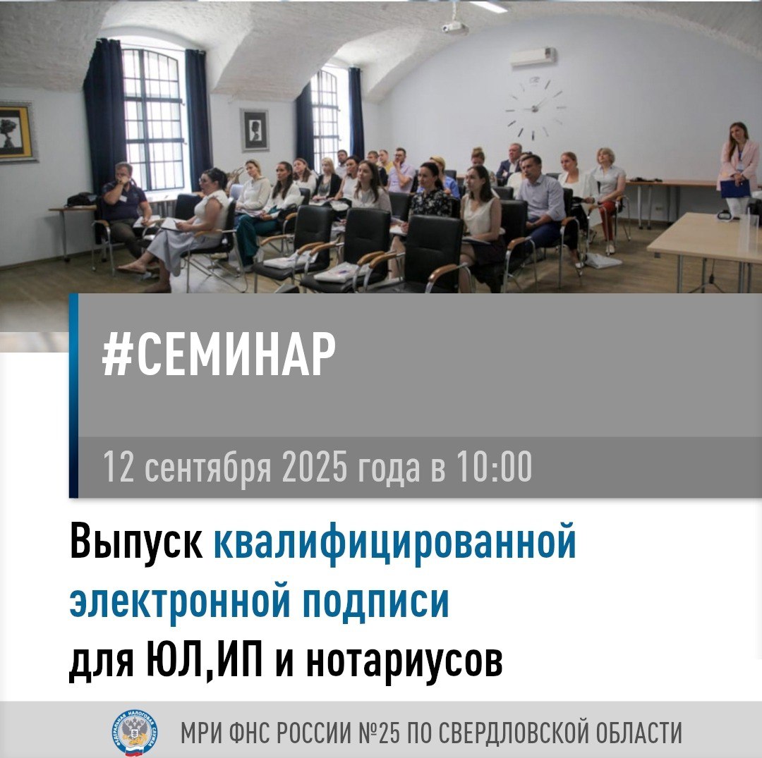 Межрайонная ИФНС России № 25 по Свердловской области приглашает налогоплательщиков на семинар 12 сентября в 10:00