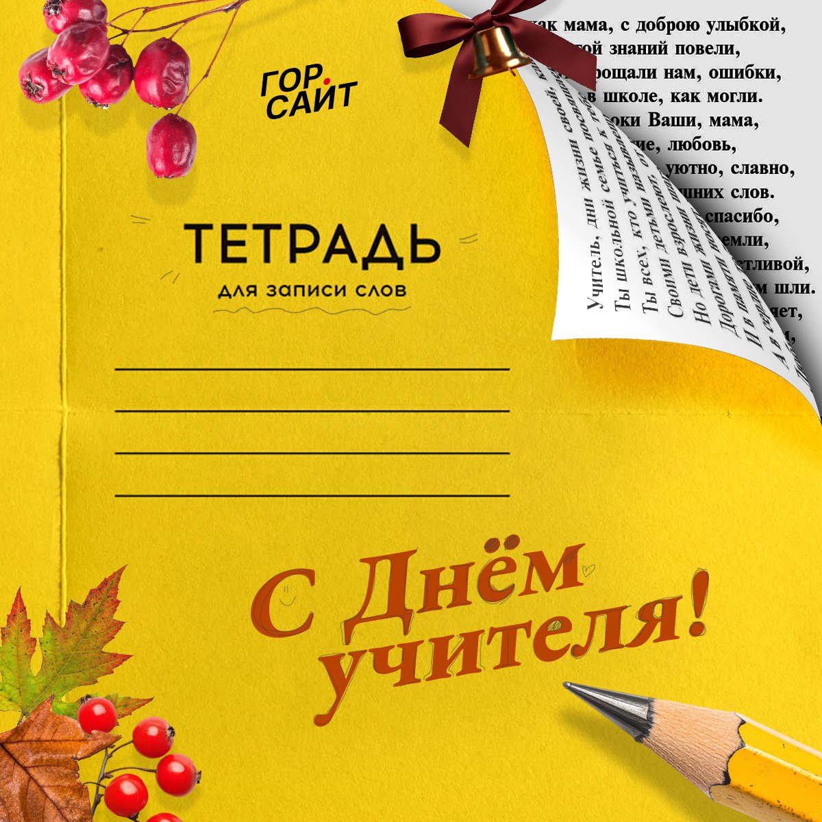 В этот особенный день, когда мы отмечаем День учителя, позвольте нам выразить нашу бесконечную благодарность и восхищение. Вы — те, кто не просто преподает уроки, а формирует будущее, зажигая огонь любопытства в глазах детей. Ваши руки, держащие мел или указку, на самом деле держат ключи к мирам науки, искусства и мудрости.
