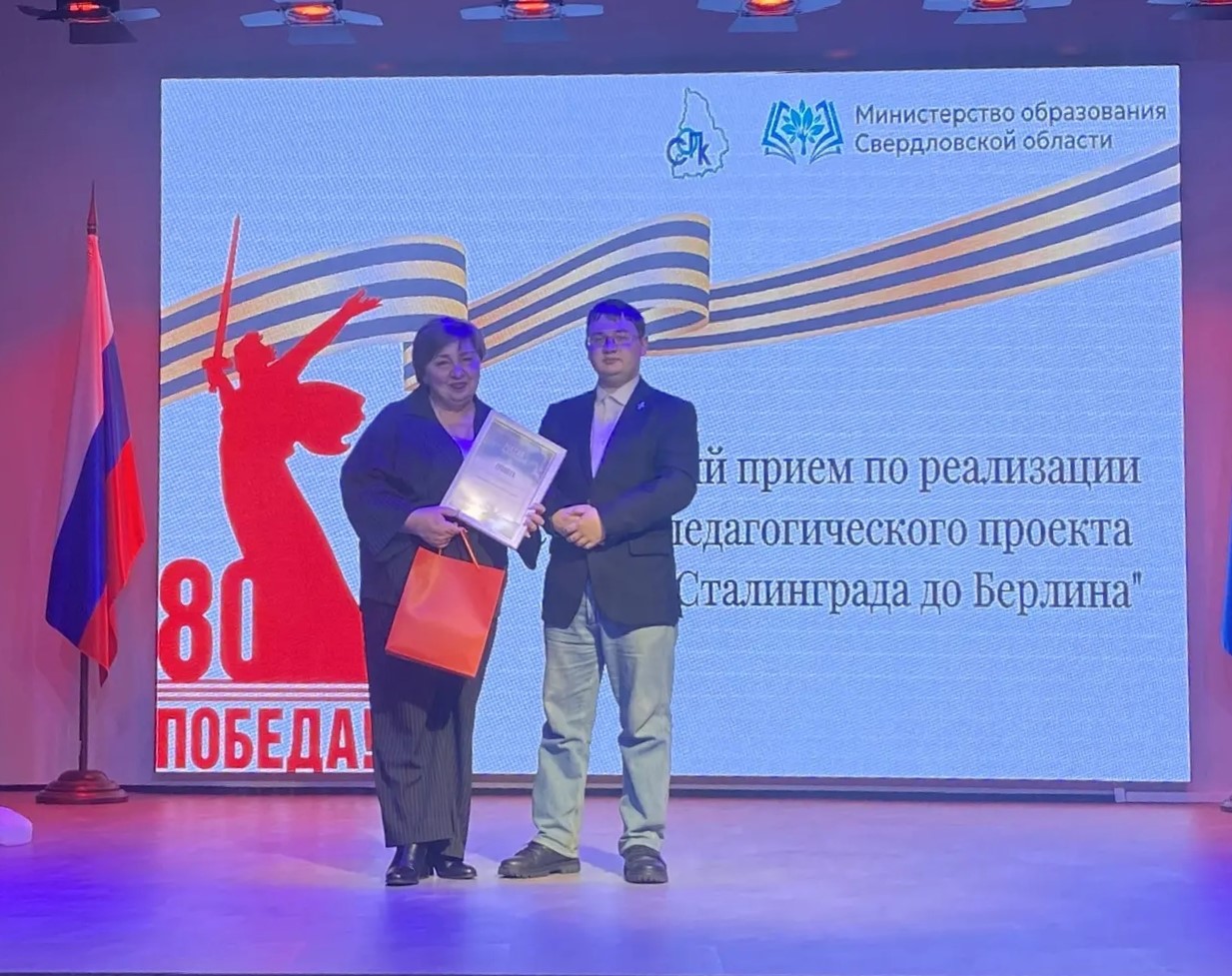 Делегация Управления образованием Полевского приняла участие в торжественном приёме, посвящённом подведению итогов областного педагогического проекта «От Сталинграда до Берлина». Мероприятие прошло в Екатеринбурге при поддержке Министерства образования и молодёжной политики Свердловской области.