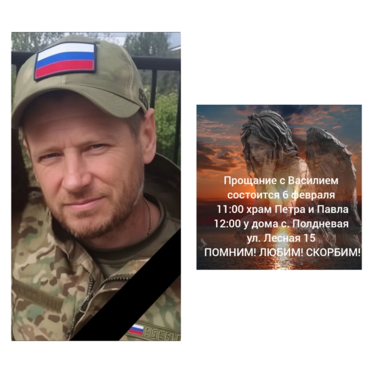 Прощание с ним состоится 6 февраля в 11:00 храм Петра и Павла (Южная часть), 12:00 у дома с.Полдневая, ул.Лесная, 15.
