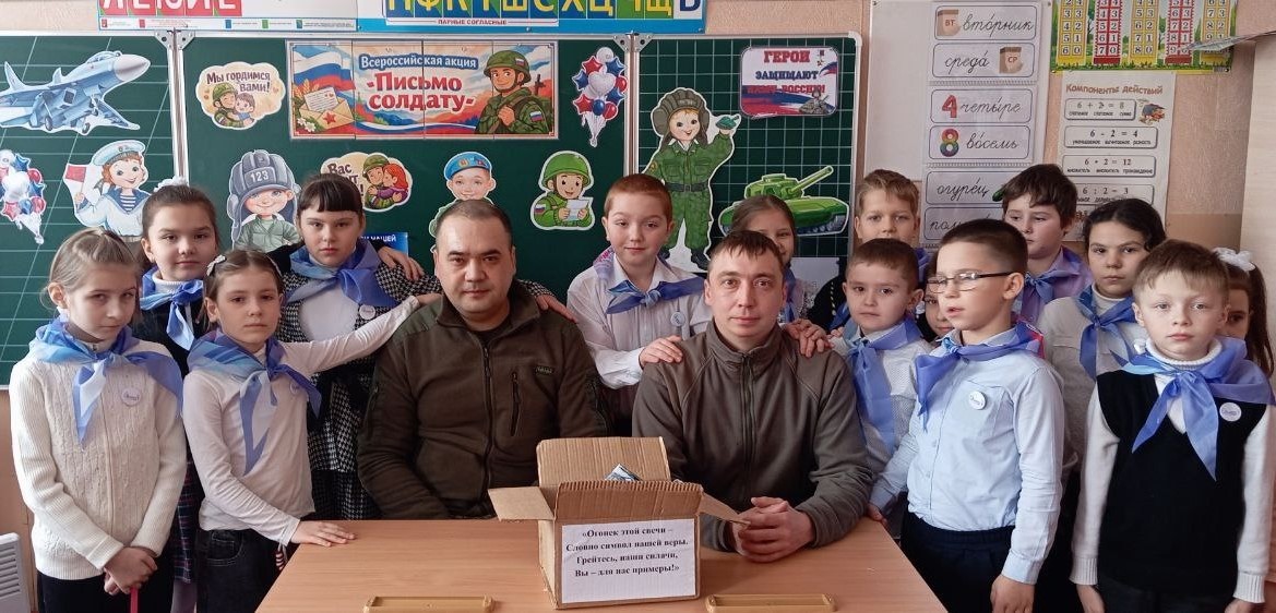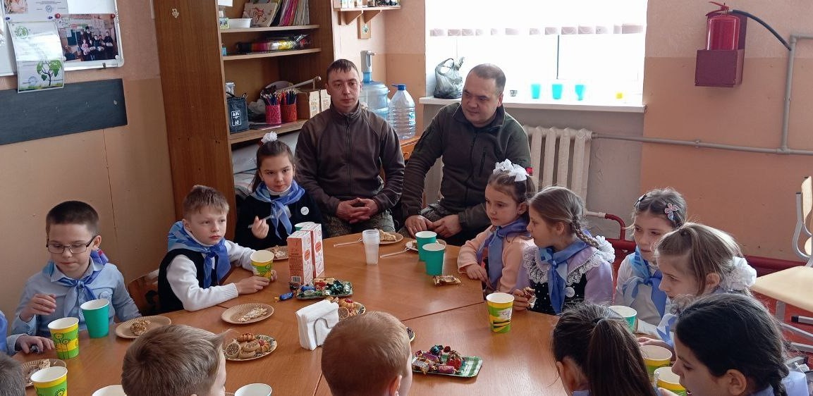 Полевчанин Роман Шлыков, находящийся сейчас в зоне СВО, посетил одну из школ в районе восстановления