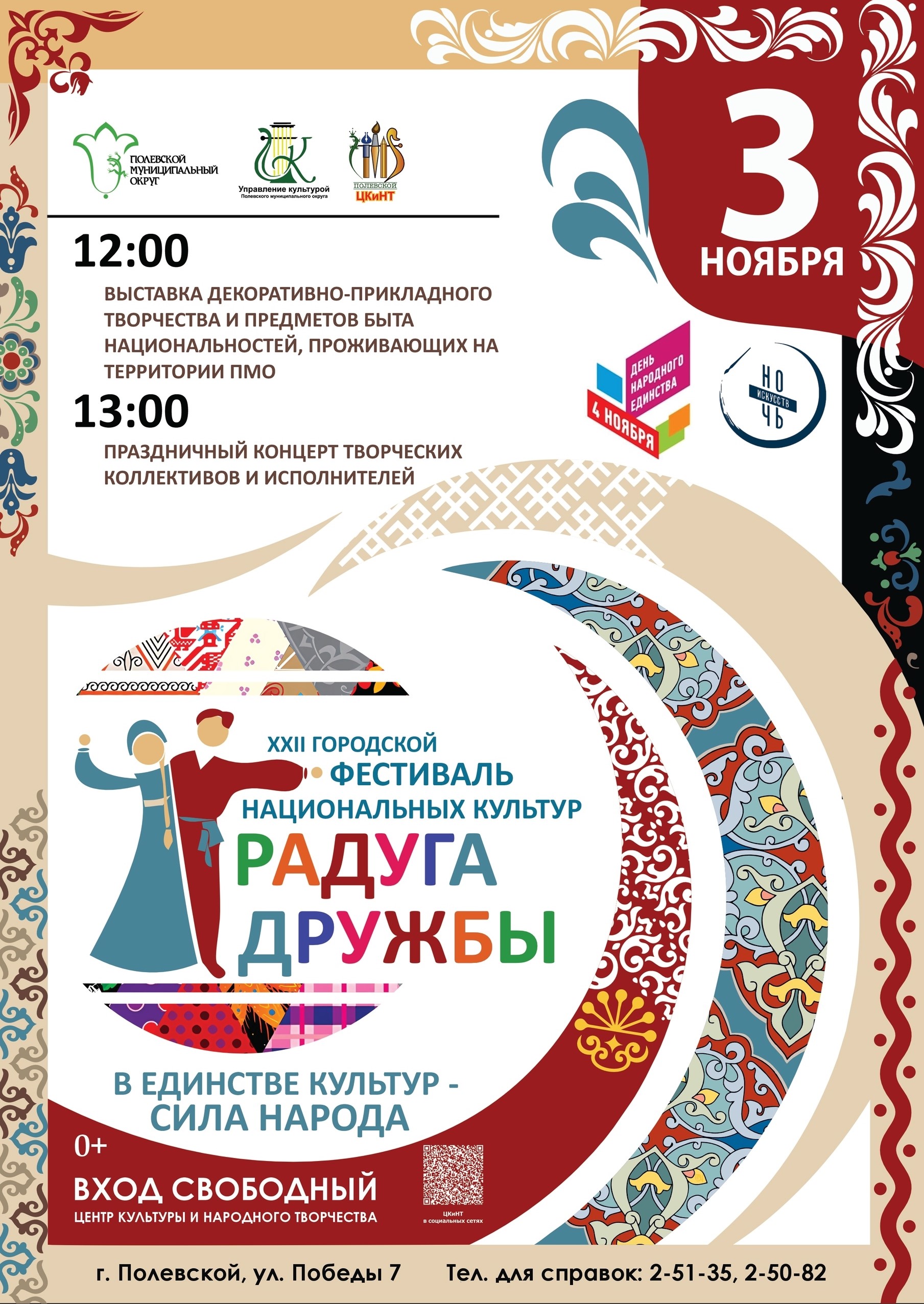 3 ноября в Центре культуры и народного творчества пройдет XXII городском фестивале национальных культур «Радуга дружбы».
