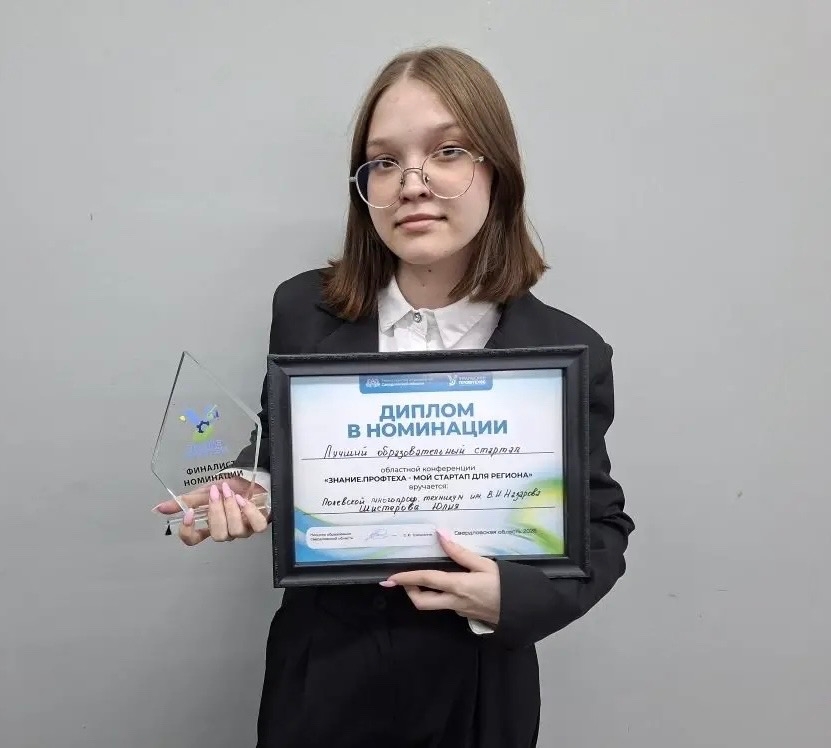 В областной научно — практической конференции приняли участие 133 студента из профессиональных образовательных организаций Свердловской области. Студентка ПМТ Юлия Шистерова вошла в десятку лучших авторов, награжденных специальными Дипломами. Юлия обладательница Диплома в номинации областной конференции «Знание.Профтеха – Мой стартап для региона».