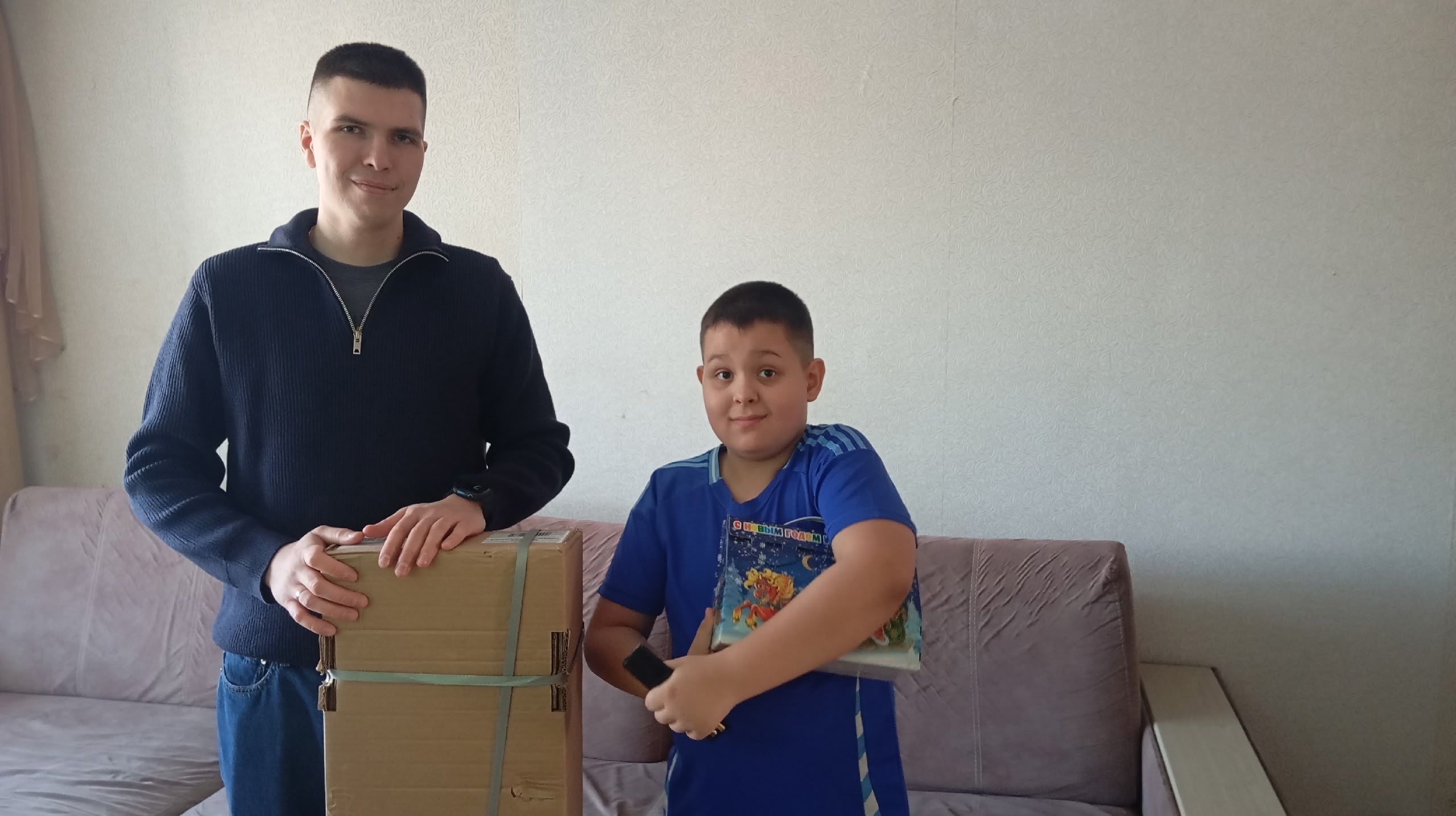 Помимо спортивного инвентаря, ребенку был вручен сладкий подарок от Главы Полевского муниципального округа и Председателя местной Думы.