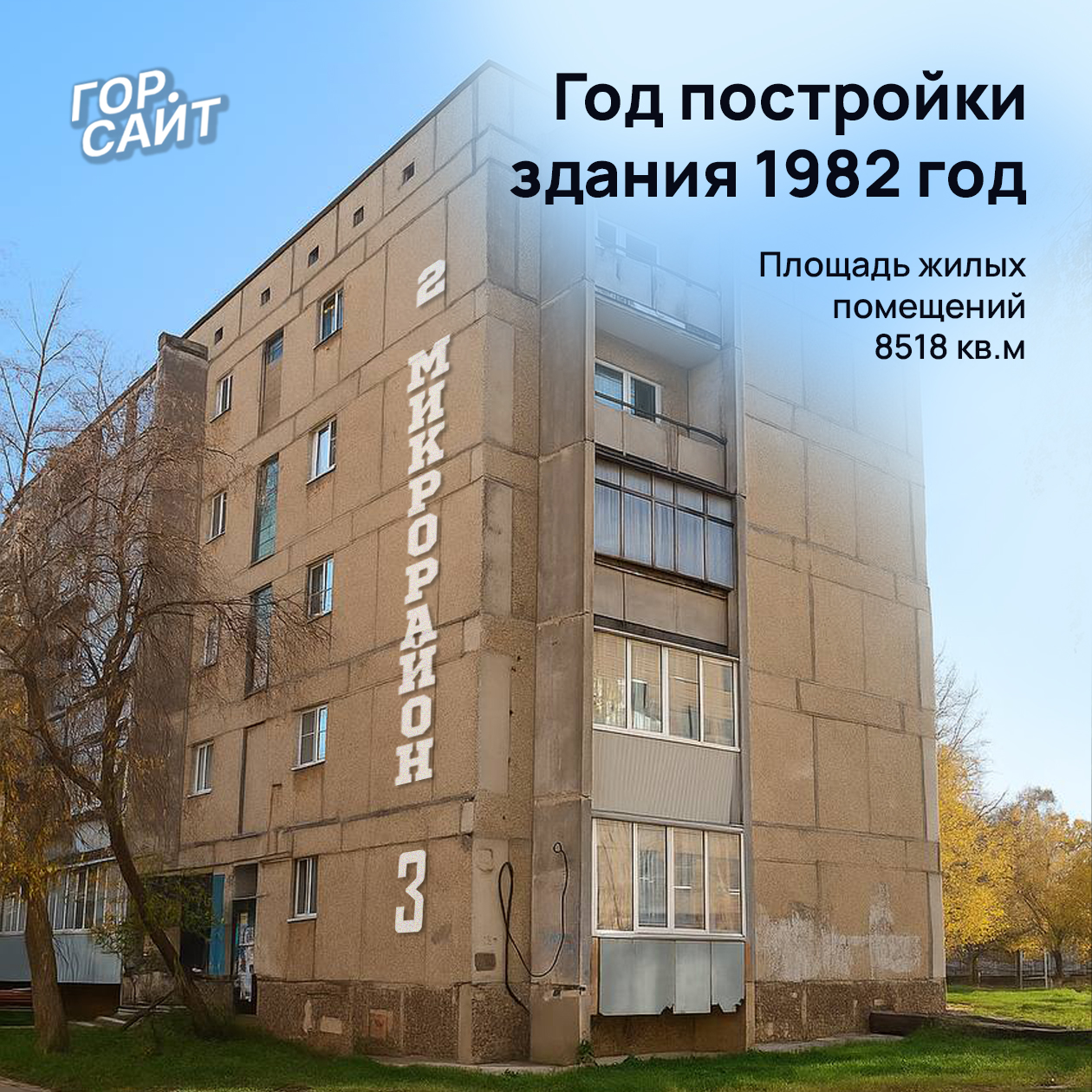 Год постройки здания – 1982 год, 5-этажный, имеет общую площадь всех помещений 8518.4 квадратных метров.