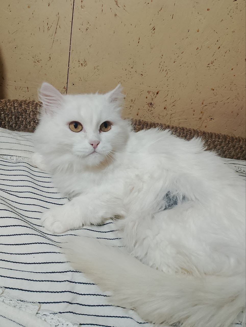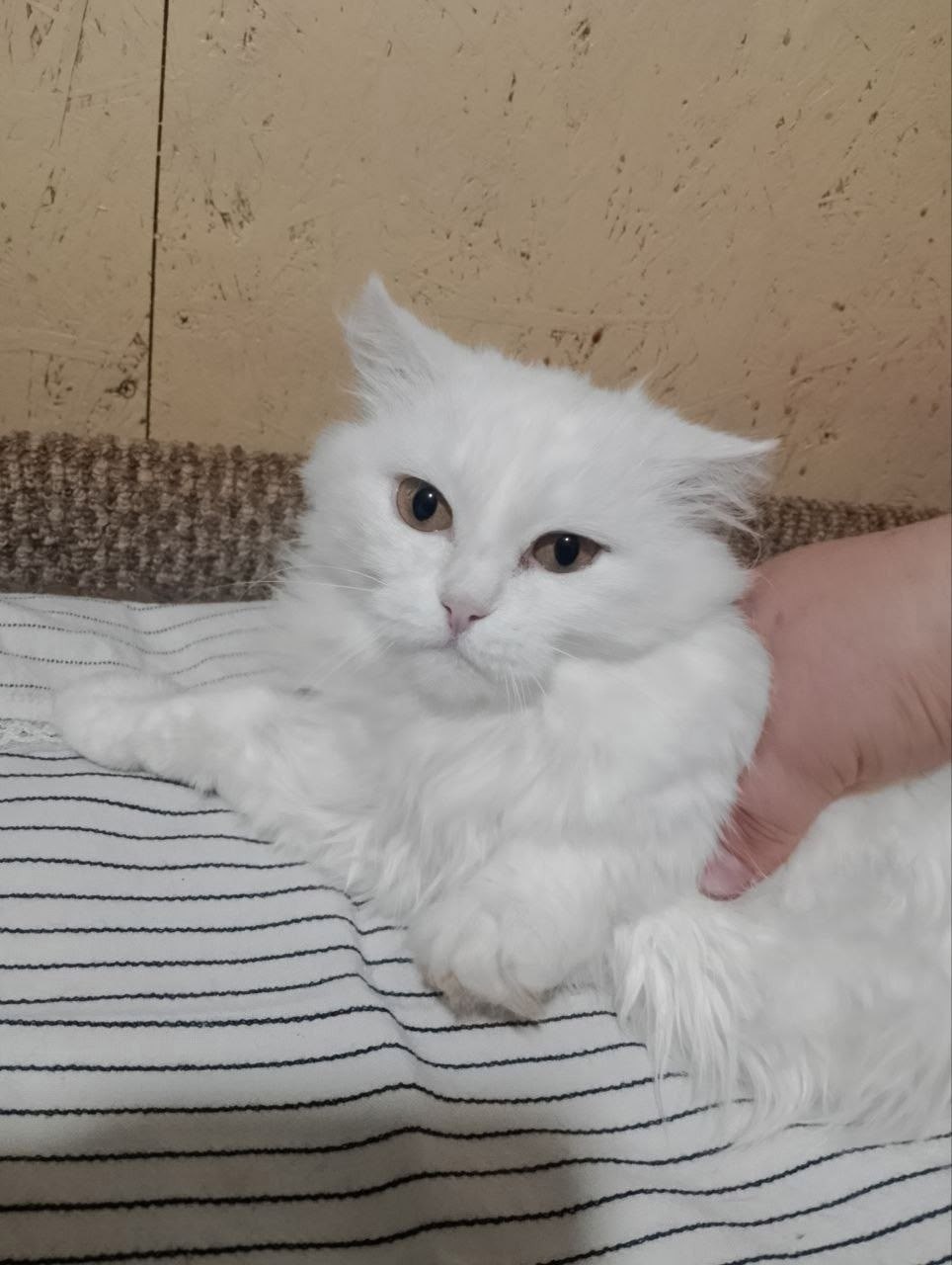 Мася — взрослая и очаровательная кошка с белоснежной красотой, которая мечтает о любящем доме. Она поступила в начале августа из СНТ «Уральские зори» вместе с тремя котятами, которые уже нашли свои дома, и вот уже несколько месяцев она ждёт своего шанса на счастье.